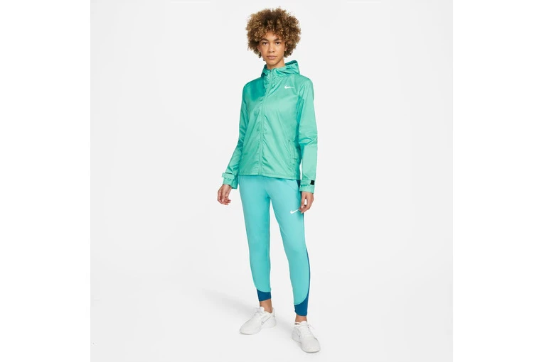 Het Nike Essential hardloopjack zorgt dat je kunt blijven hardlopen als het regent. Waterafstotend materiaal met capuchon zorgt voor bedekking en houdt je droog, kilometer na kilometer.